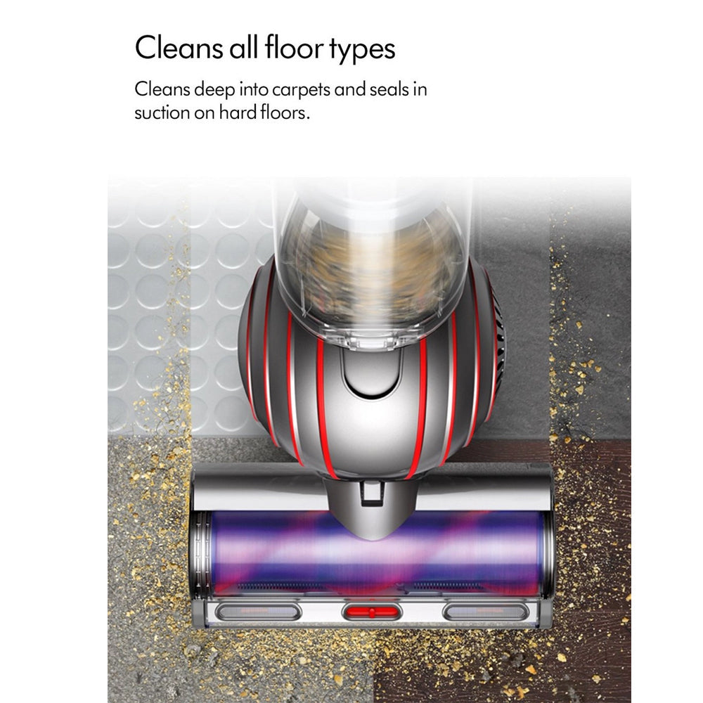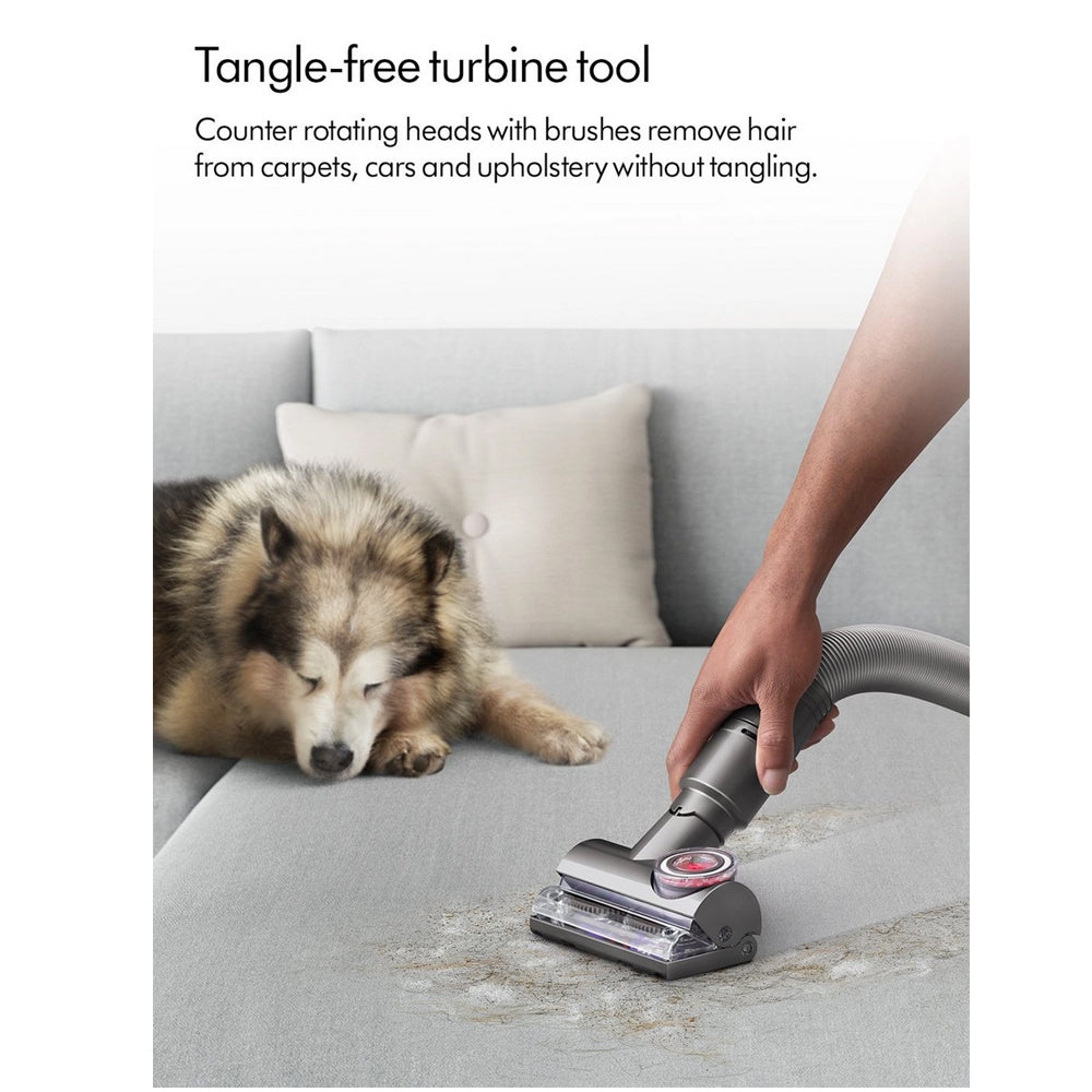 Coming with a range of attachments, this Dyson vacuum cleaner has the right tool for every task. The Motorbar cleaner head cleans deep into carpets and seals in suction on hard floors. With its special removal vanes, hair is automatically cleared from the floorhead as it cleans. Reach every nook and cranny with the combination tool and clean the stairs using the dedicated stair tool. What’s more, this model comes with a tangle-free turbine tool. Counter-rotating heads with brushes remove hair from carpets, cars, and upholstery. There’s no more tangles with Dyson.