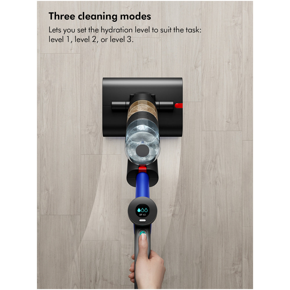 Choose from three cleaning modes to adjust the hydration level based on your cleaning needs. Whether you're dealing with light spills or tough, sticky stains, the Dyson WashG1™ has the perfect setting to get the job done.